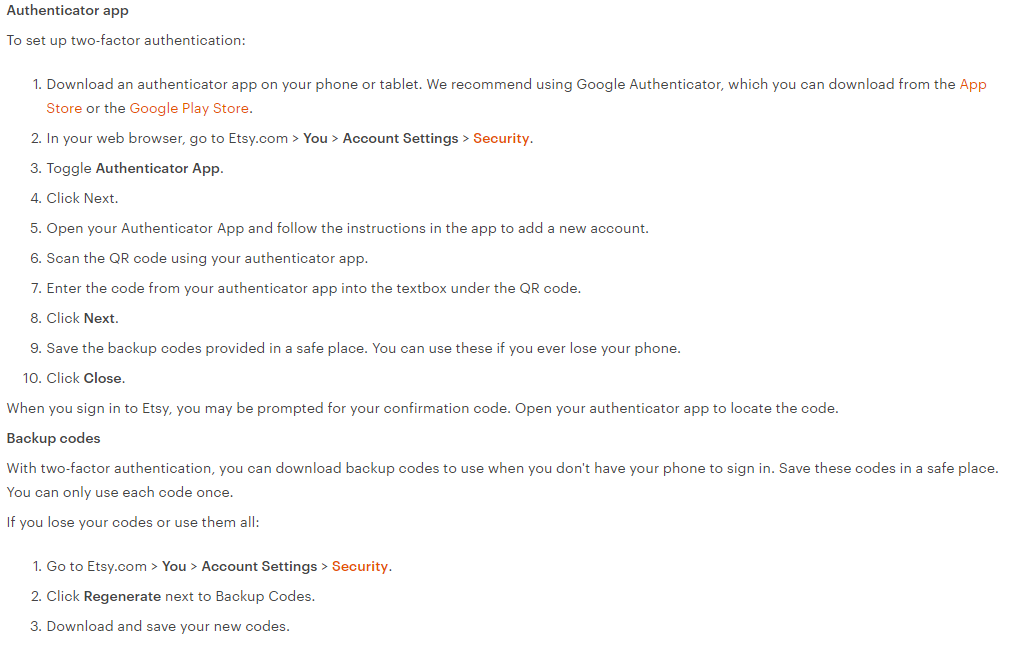 I was going to record a quick video to show you how the login process now works with 2FA, and in doing so discovered something that’s not-so-great. After logging into Etsy’s mobile app (and website) one with the 2FA code, logging out and back in no longer requires the code.