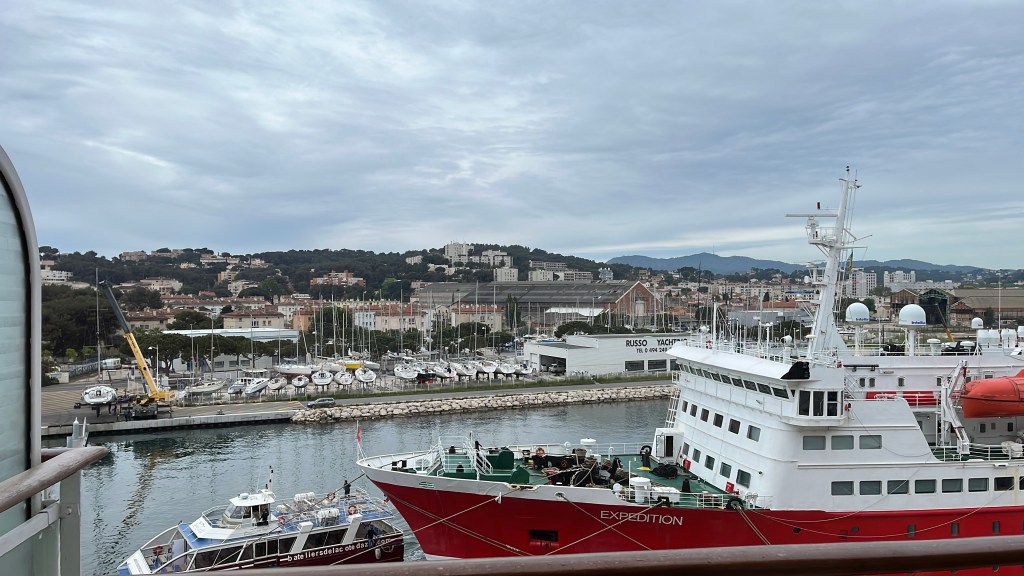 We arrived in Toulon to grey skies and a breeze that didn’t shy away from itself. It was now Thursday and we were both feeling quite a lot better, so we were looking forward to getting off the boat again.