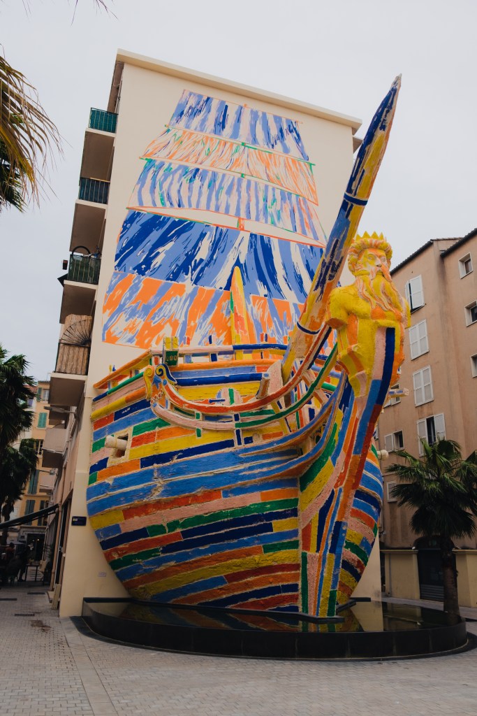 It was, as mentioned, a very pretty town. Given the grey weather it wasn’t particularly busy, which allowed us to amble around without feeling rushed. AJ kept getting paranoid that we were going to stray too far from the boat (or was it me? Time has dulled the memory) so after about an hour of wandering we started heading back towards the docks. There was a hotel with artwork down the side that we liked, and a Ferris wheel that nobody seemed interested in. We sparked some trade by lining up for a ride (another couple joined us when they saw us buying tickets) and got to see a bit more of Toulon and its environs from up high.