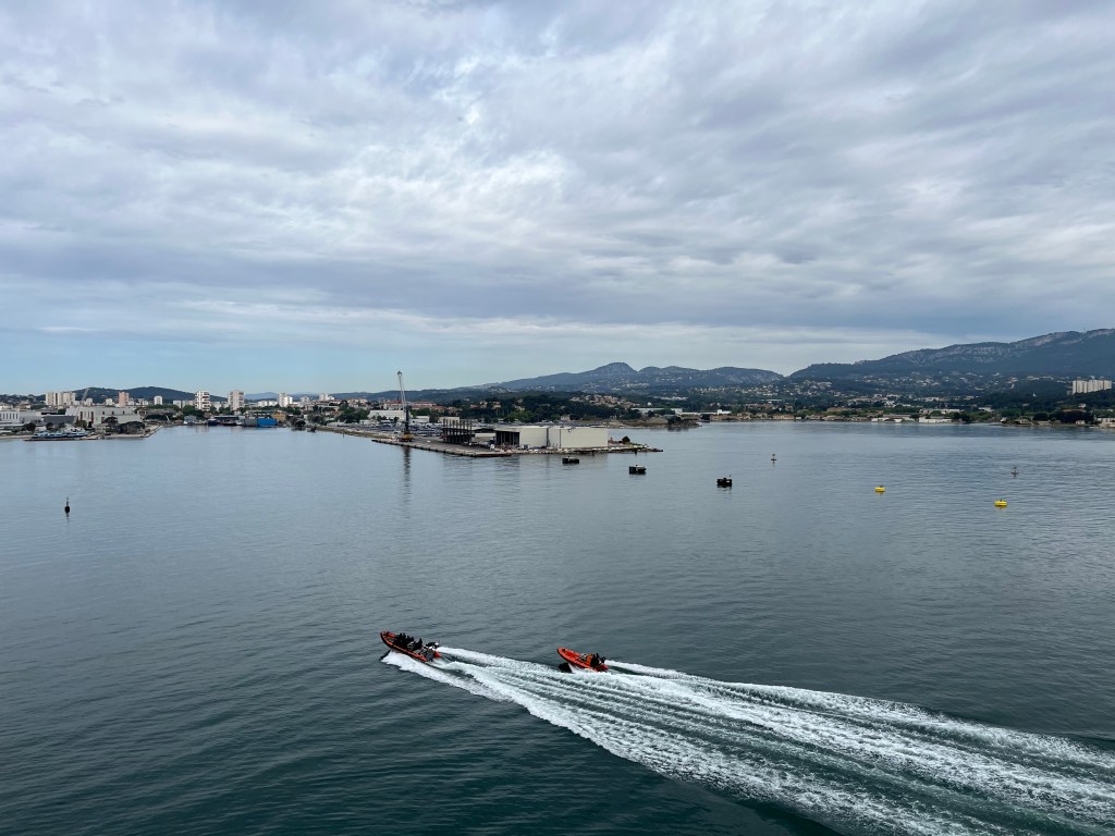 As we headed away from the Constellation I realized why; there were several French Military vessels moored, along with another one clearly under construction. As we left, we saw crew on board our boat carrying out a safety drill – cool to see, and reassuring to know that they all regularly practice scenarios which could save our lives if the worst were to happen.