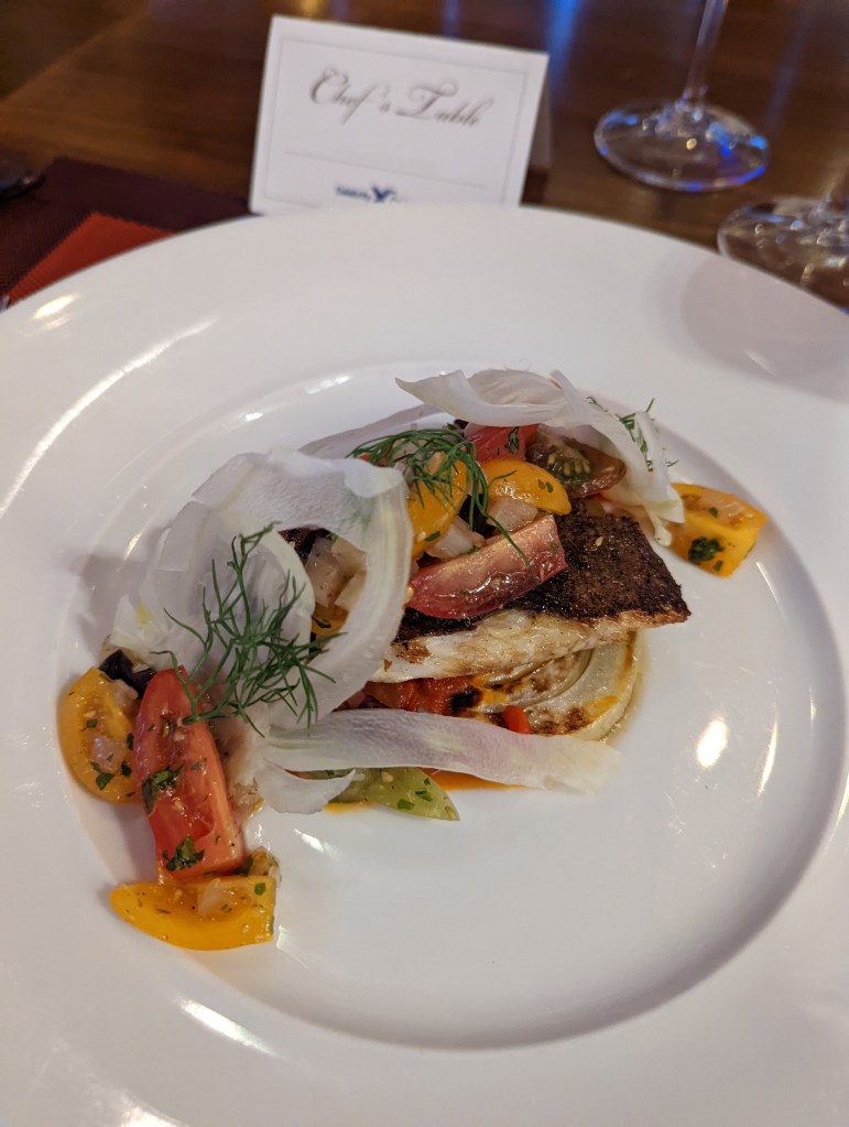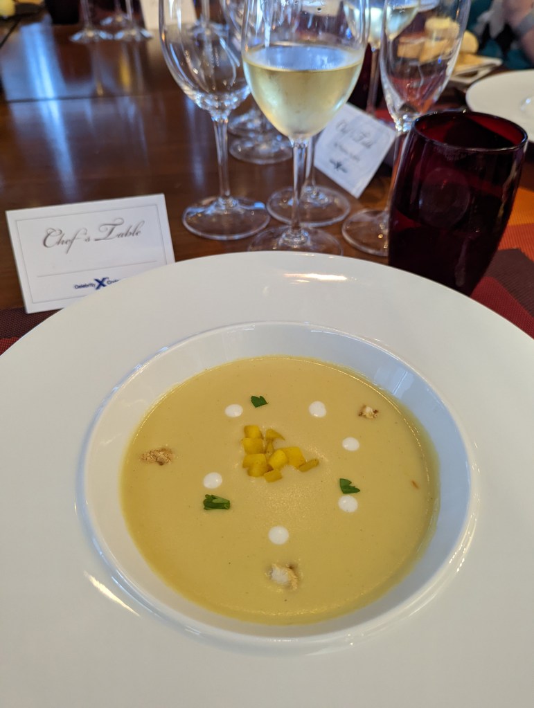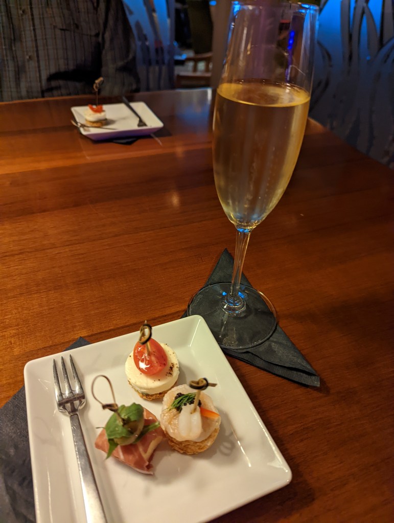 We enjoyed these delicious amuse bouches with our champagne and got to know each other a little, and break the ice a bit. Once we had let the bubbles settle, the chefs were ready to welcome us up to our table for the evening back on Deck 10.