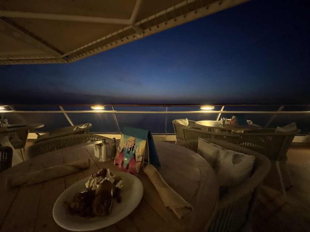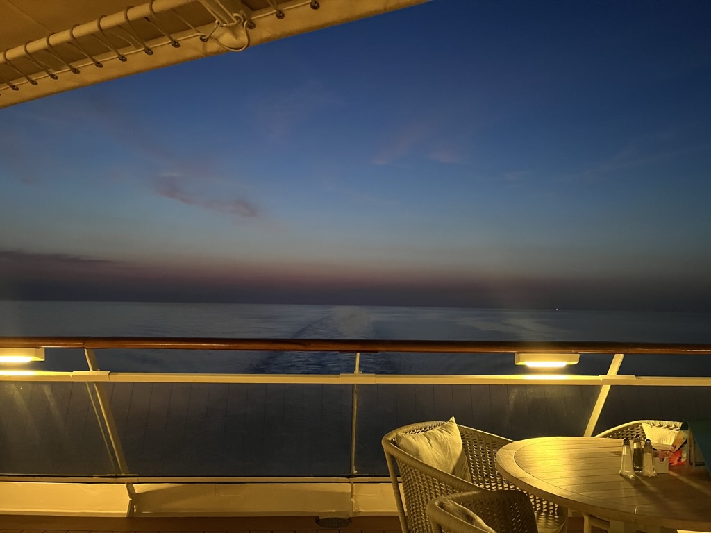 The indoor pool was a hydrotherapy spa, with water containing a high salt content, so you could just float about and stare up through the glass ceiling at the sunny skies above us. It was a really lovely way to spend a few hours of the afternoon – alternatively floating around and returning to the loungers to read and enjoy alcoholic drinks from the bar next door. Cruise life is where relaxation is truly possible.