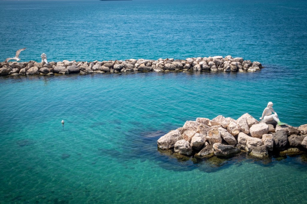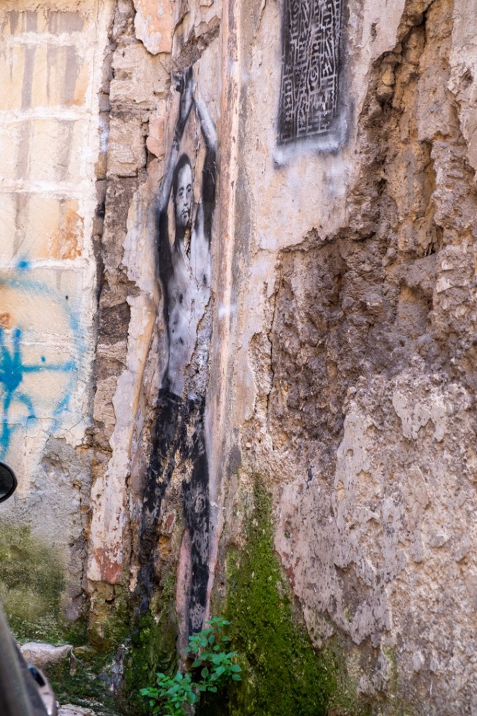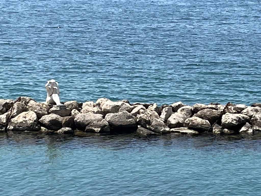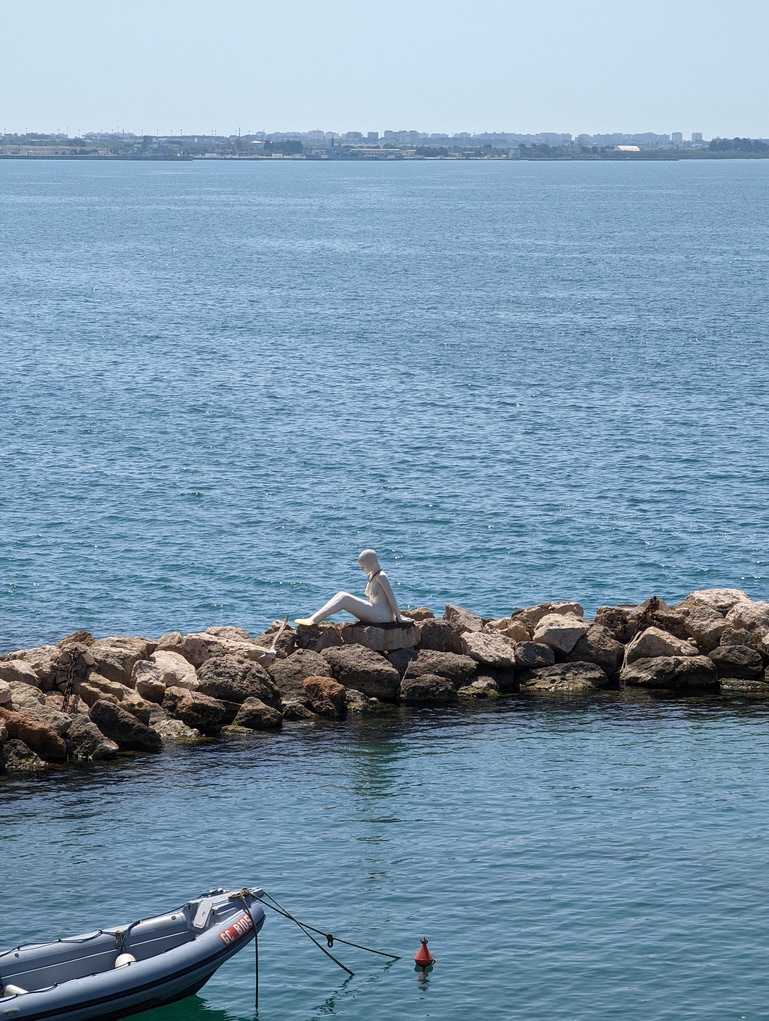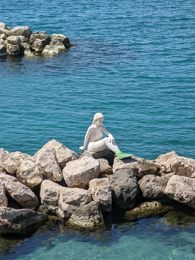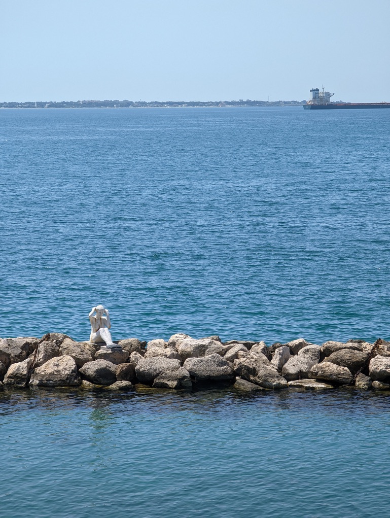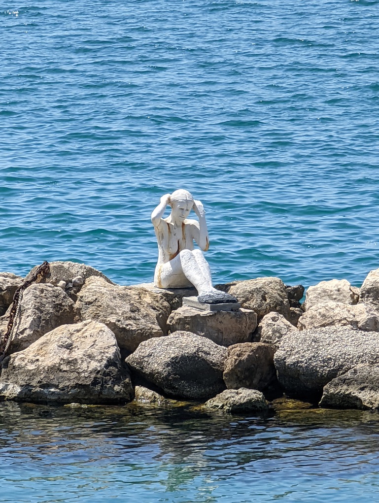 We had chosen to avoid the excursions at this port because none of them seemed particularly appealing, so we disembarked and took ourselves on a walk. We made our way through the seaport and then headed into town along a narrow, oddly grip-free pavement that ran alongside a busy, narrow street. The sea was blue and beautiful, but the buildings we walked alongside sometimes seemed tired and dilapidated.