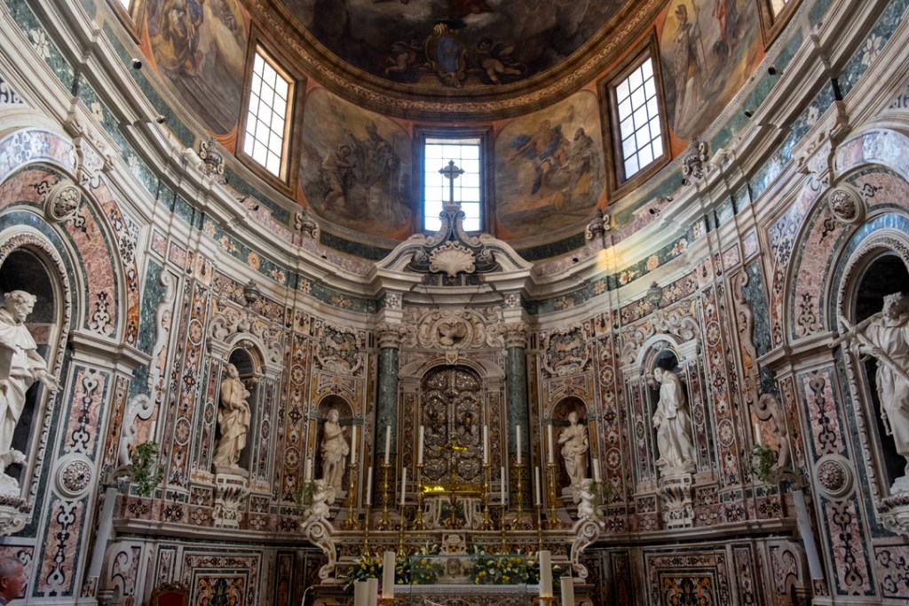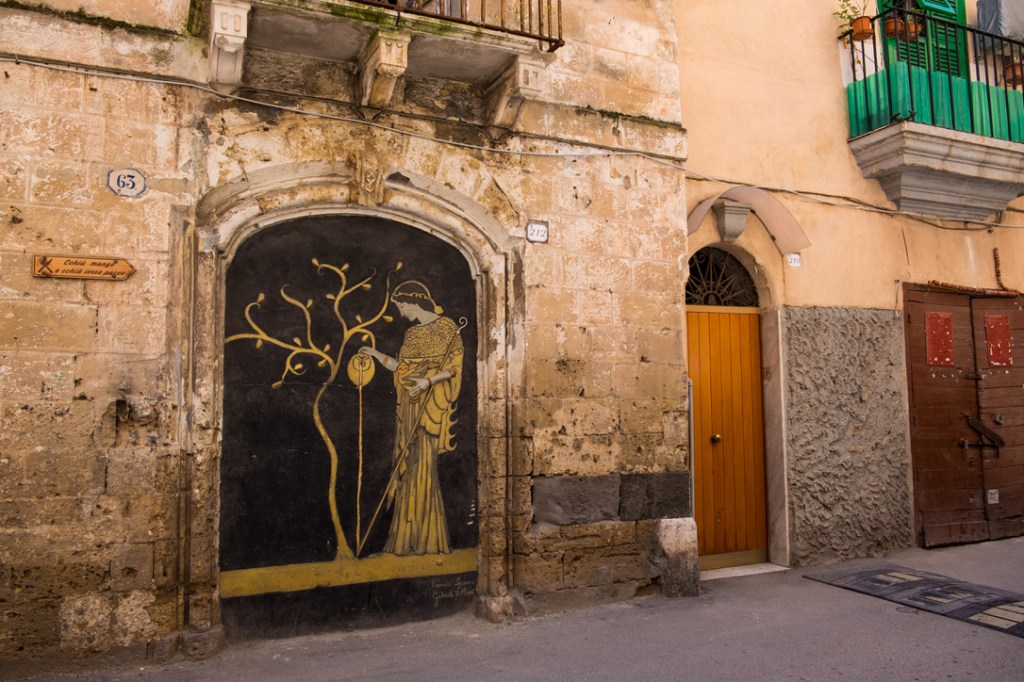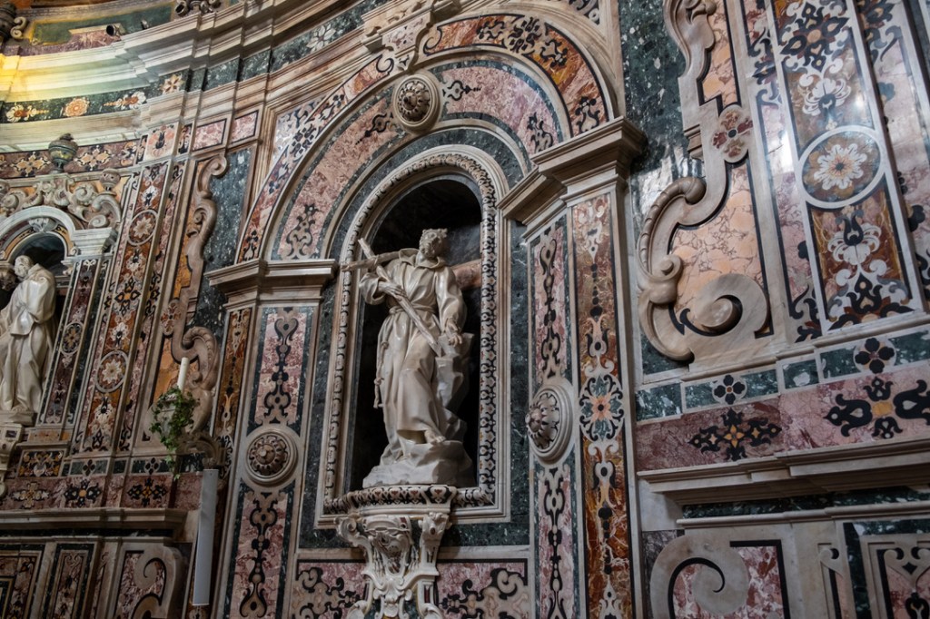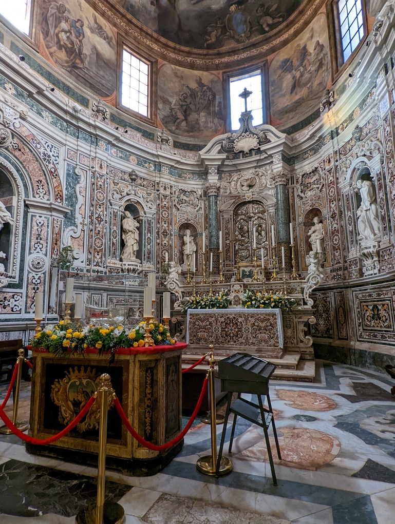 After lunch, we decided there wasn’t much more to Taranto, so we headed back to the boat. Not wanting to walk along the weirdly-slippy pavement again, we took a detour down some side streets (after finding a place to buy a magnet!) and found ourselves in a maze of buildings that felt old. These places had clearly been standing for hundreds of years, but the whole area felt like it had also been more or less deserted for at least a few decades. We stumbled upon a church and decided to look inside, as there wasn’t much else that we were coming across to do or see.