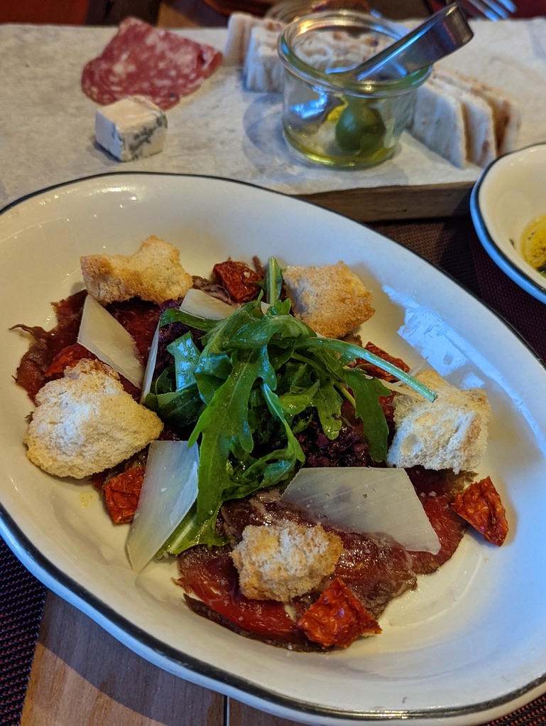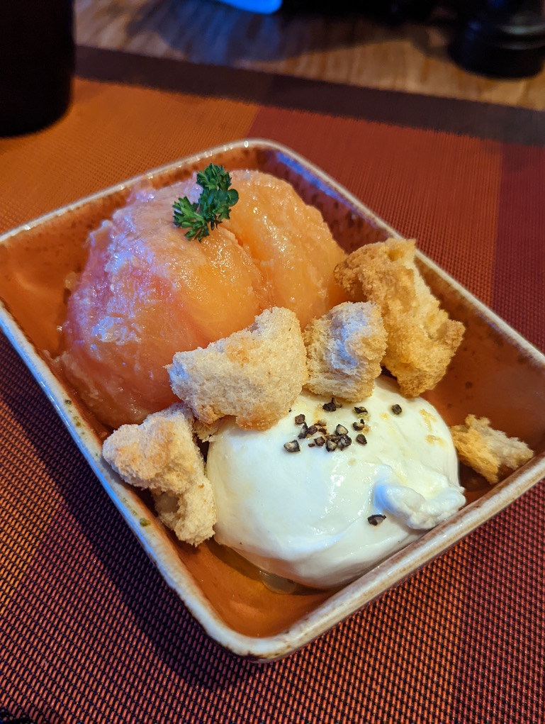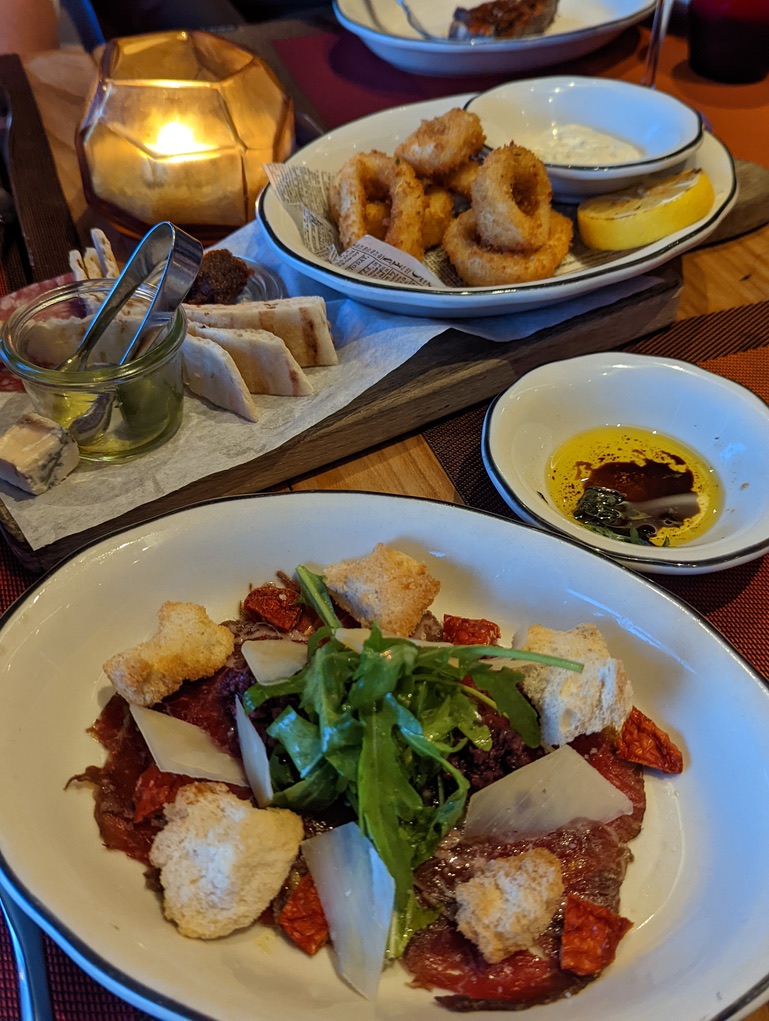 Once we got back, we had our final meal with our new cruise friends. This was when we learned that, at the specialty restaurants, you can order everything on the menu, and the cost of entry doesn’t change. So that’s what we did.