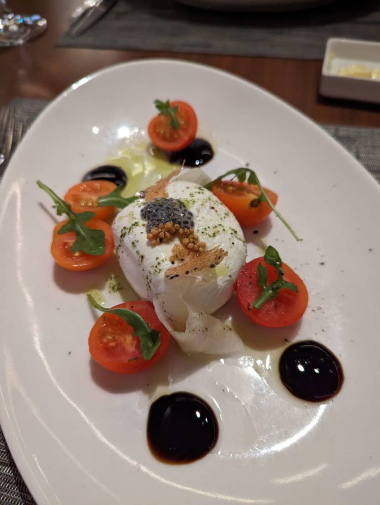 After learning more about the various packages from Deb & Tom on the previous cruise, we’d purchased a 4-night Premium Dining package ahead of time. This meant that we could book and eat in the premium restaurants for four nights and dine to our hearts’ content without incurring additional costs. Deb & Tom had done the same, and as they were on the boat several hours ahead of us, they had gone ahead and booked a night in each restaurant for the four of us. This is the best way to do it – you can always cancel a reservation at any time without incurring a penalty, but if you don’t get a booking placed early, you may find that all the good time slots have been used up. With shows in the evenings, none of us wanted to eat too late – though we did miss some things due to dinner throughout the trip.