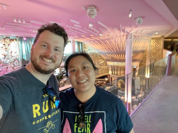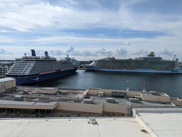 The Celebrity Equinox was also in port, which gave us some happy nostalgia. We first sailed on the Equinox in 2017, two days after I’d moved to America. It kickstarted my interest in cruising, and began our ‘real’ relationship after a year of long distance. Here we were five and a half years later on another cruise, having just celebrated our engagement, and the Equinox was here to see us off. She looked resplendent in her new ‘revolutionized’ paint job, and we talked about how we should try sailing on her again to see what had changed in the refurb.