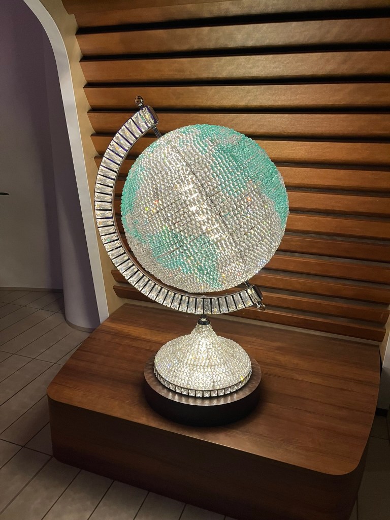 After getting our selfie overlooking the Grand Foyer, we found our way to our stateroom and were once again blown away. You can read more about it in my previous post discussing the ship.