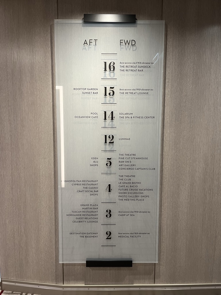 It had become ‘tradition’ on previous cruises for us to get a selfie on the gangway leading to the ship, but the one leading to Apex was fully enclosed and didn’t give us a good shot, so we waited until we’d gone aboard – and we were blown away. The entrance on Deck 6 was like a glass-fronted entrance to a high-end hotel and set the tone for what was to come.