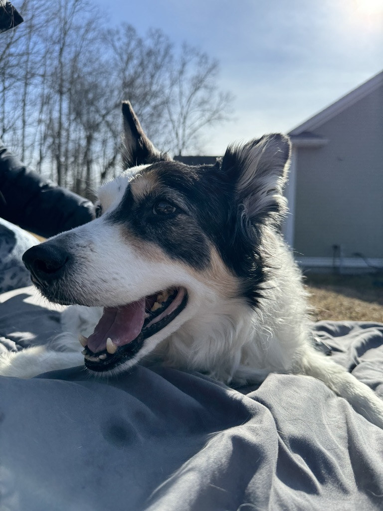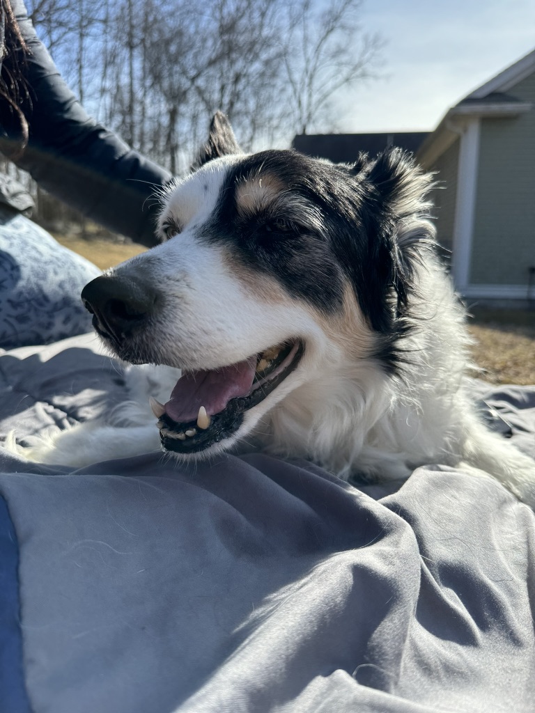 They told us that we could euthanize him outside, if we wanted. It was an unseasonably warm day, with a pale blue sky dappled by fluffy clouds. Given that his last few months of outdoor visits had been marred by snow, ice, or seizures, I loved the idea that he could lie outside, feel the warm sun on his fur and sniffer all the outside smells that the breeze would carry to him.